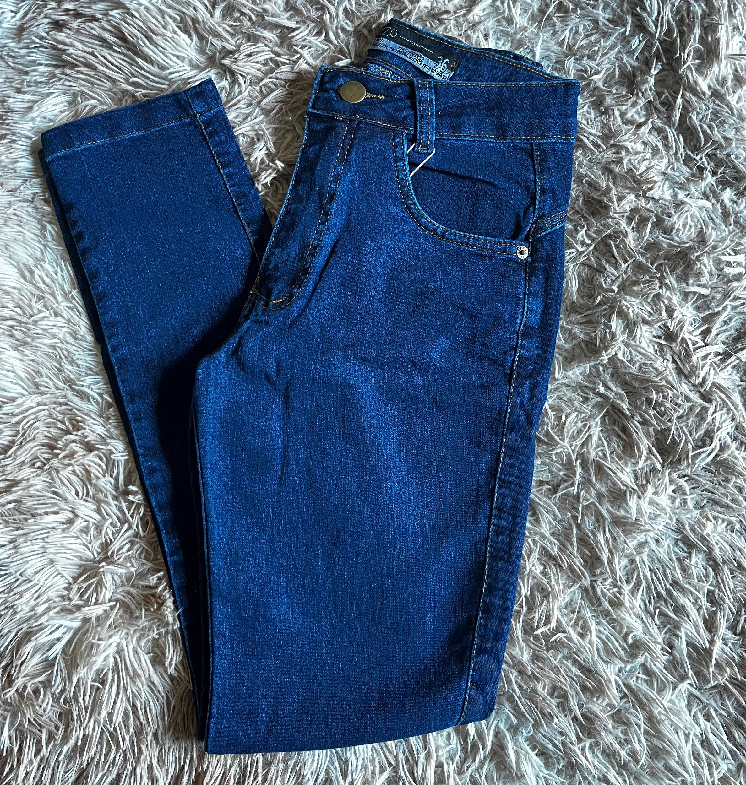A Calça Jeans Skinny é feita com tecido 100% algodão, garantindo conforto e durabilidade para o uso diário.